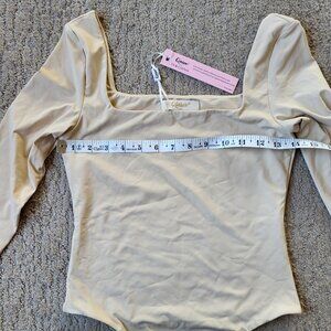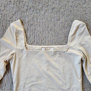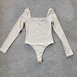 Women’s Square Neck Long Sleeve Bodysuit – Cream – Size M – NWT