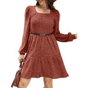 Women's Square Neck Long Sleeve Fall Dresses Casual Baby Doll Sweater Dress