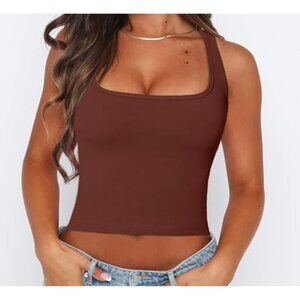 Women's Square Neck Racerback Crop Tank Top – Cinnamon – Size XL – NWOT