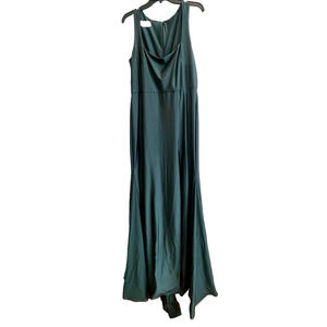 Women's Satin Mermaid Dress Evergreen Size XL Square Neck With Slight Train 💚NEW💚Cynthia & Sahar $289 Retail