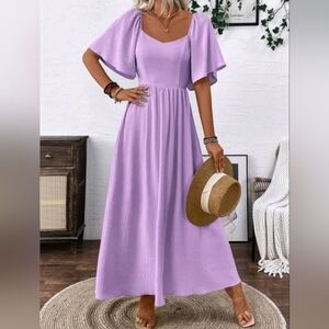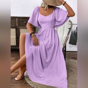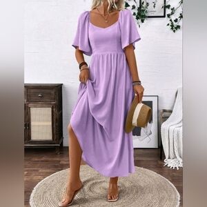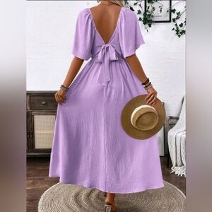 Women's Square Neckline Puff Sleeve Backless Dress With Bow Knot Maxi Vacation