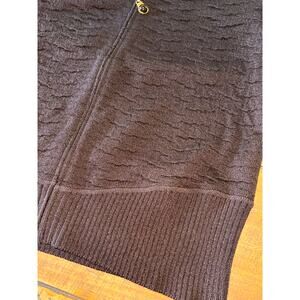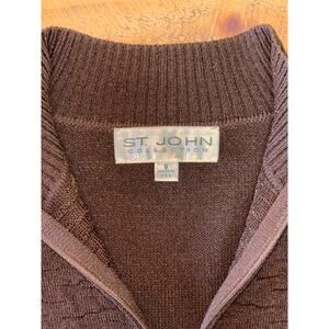 Womens St. John Brown Textured Pique Knit Full Zip Cardigan Sweater Buttons 6