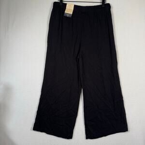 Women's St Johns Bay Black Cropped Pant Wide Leg Drawstring Mid Rise Comfort M