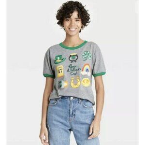 Women's St. Patrick's Day Icons Short Sleeve Graphic T-Shirt - Gray S Shipped with USPS First Class. X4