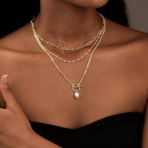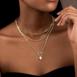 3Pcs Necklaces Set:The layered necklace is composed of a paperclip chain,a strip chain and a thin smooth cross pendant necklace.As a stacked necklace,elegant and cute,gold layered necklace can match your styles freely,you can wear them together or separately.