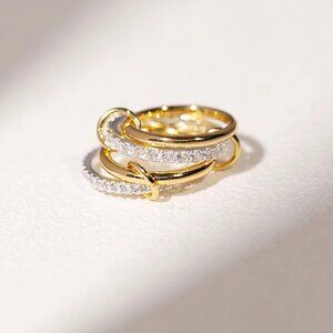 Features: This chunky set includes two simple gold bands and two silver cubic zirconia rings, all connected with a cute gold jump ring. Mix and match to elevate your look, perfect for stacking, layering, or wearing alone. Crafted from 18K gold-plated and platinum-plated brass, with AAAAA cubic zirconia, hypoallergenic, waterproof, and tarnish resistant. Hand-polished for a comfy fit and elegant shine.