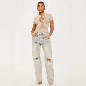 Women’s Stand Out Short Sleeve Crewneck Thong Bodysuit | Color: Taupe | NEW/NWT!