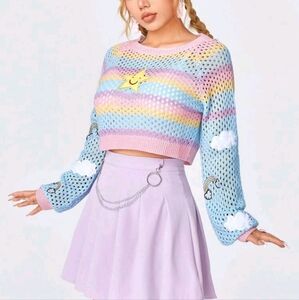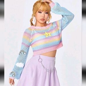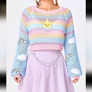 Women's Star Embroidery Color Block Hollow Out Sweater