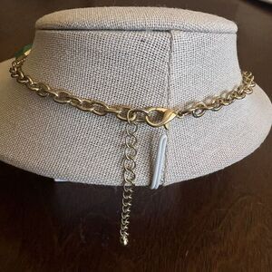 Women's Statement Bib Choker Necklace Gold-Tone Green Faceted Dome Stones 16 in Make a bold statement with this stunning gold-tone necklace featuring asymmetrical green faceted dome stones. The adjustable choker length of 16 inches ensures a perfect fit for any occasion, whether it be an engagement, wedding, graduation, birthday or any other special event. This necklace is a perfect gift for Mother's Day, Christmas, Christening or Confirmation/Communion or even just to show someone how much you care on Valentine's Day.