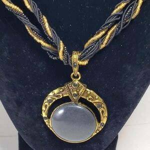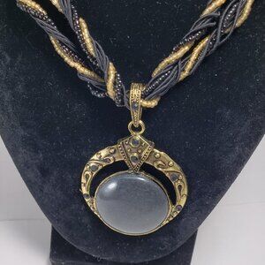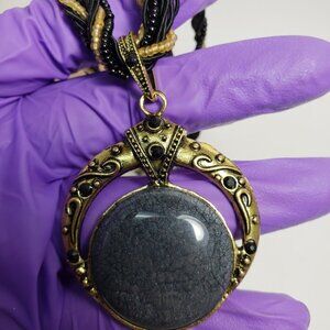 ✔️ Necklace: Multi-layered with a circle pendant and beaded accents