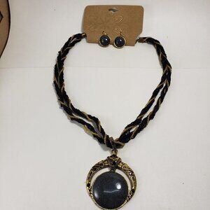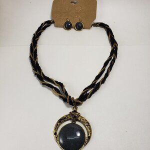Women’s Statement Layered Gold Beaded Necklace Set – Circle Pendant + Earrings