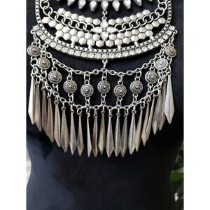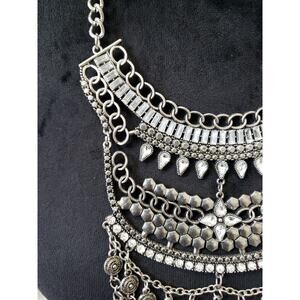 Women's Statement Tribal Bib Necklace Crystal Charms Lobster Clasp Bold