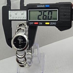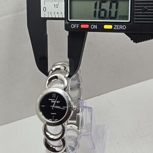 Womens Steel By Design QVC Swiss Watch Silver Tone Black Dial New Battery