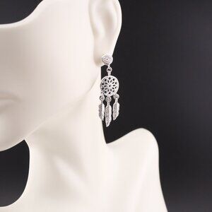 Women's Sterling Silver Dreamcatcher Dangle Earrings with Push Back Closure **