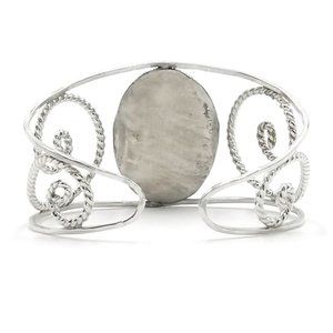 Sterling silver filigree cuff bracelet with turquoise sea sediment jasper stone.