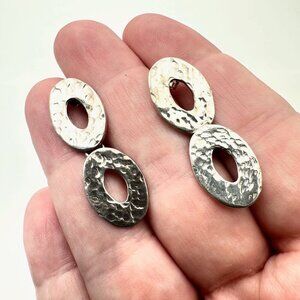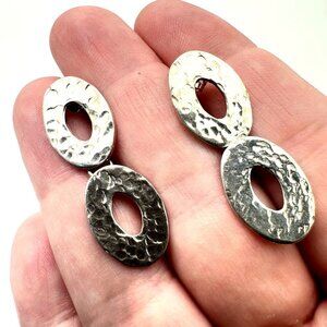 Womens Sterling Silver Hammered Circles Earrings Pierced Boho Chic