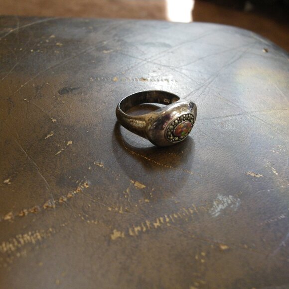 Women's Sterling Silver Statement Ring w/ Iridescent Gemstone & Marcasites