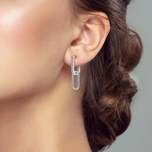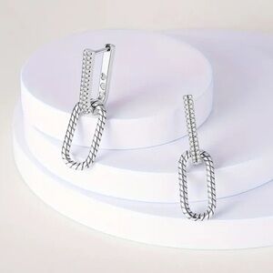 Women’s 925 Sterling Silver U-Shaped Double Ring Snake Pattern Drop Earrings - NWT