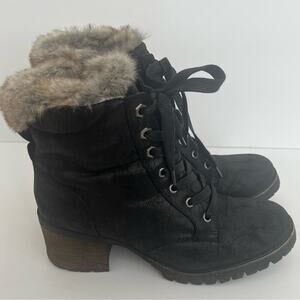 Women's Steve Madden Comfort Black Vegan Leather Lace Up Booties Boots Size 10