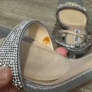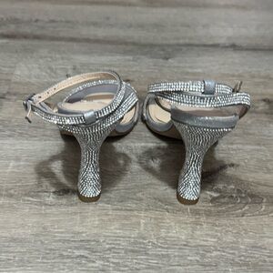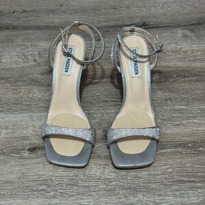 Women's Steve Madden Silver Rhinestoned Ankle Strap Mid Height Heels