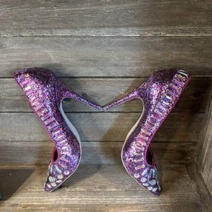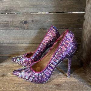 Womens Steve Madden Galaxxie Glitter Beaded Barbie High Heels Shoes Size 6.5 M