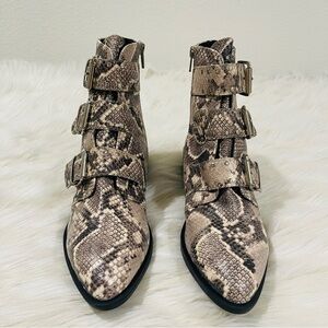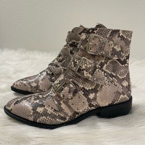 Women’s Steven by Steven Madden Harmon Snake Print Moto Boots 9 US! New without box. Stylish Moto boots. Buckle on the sides and they have a side zipper. 1” heel.