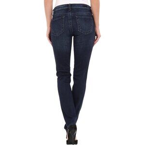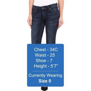 Features: Classic straight-leg fit crafted in soft stretch denim for all-day comfort. Dark blue rinse with artistic whiskers, hand sanding, and tonal topstitching give it a lived-in, stylish vibe. Features a belt loop waistband, five pockets with embroidered back pocket details, zip fly, and a flattering silhouette that visually lengthens your legs.