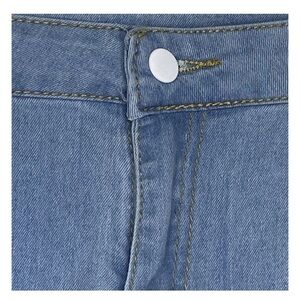 The jeans are made of a durable 65% cotton and 35% polyester material that has been lightly washed to give it a unique look. They are machine washable and have a regular fit, perfect for everyday wear. These jeans have some distressed features to give them a little edge, with accents such as buttons and zippers. The model and country/region of manufacture are unknown.