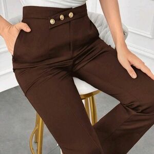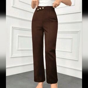 Women's Straight Leg Loose Waist Button Detail Elegant Dress Pants