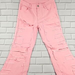 Women's Straight-leg Pants Embroidered Fashion I Stretch Patchwork Jeans Pink