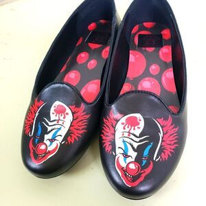 Women's Strange Cult IT Clown Scary Horror Thriller Movie Black Slip On Shoes Size 8