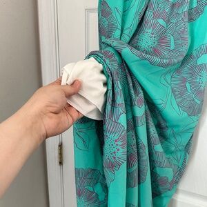 Women's Strapless Green Floral Maxi Dress Ruffled Detail Size Large Black Bead