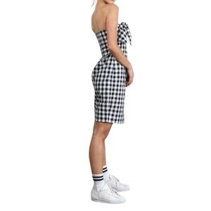Women's Strapless Tie Front Fitted Dress Sexy & Super Cute Checkered Dress New