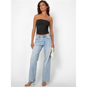 Womens Strapless Tube Tops Basic Backless Sleeveless Bandeau Going Out Crop Top