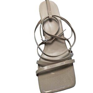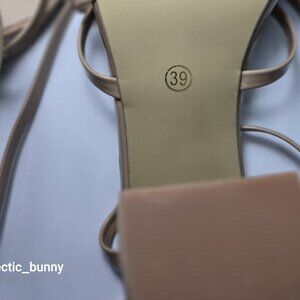 Women's Strappy Apricot Chunky Heels with Square Toe. Size 8