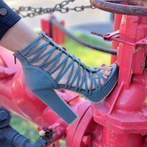 Women's Strappy Caged Platform Chunky High Heels Olive Color