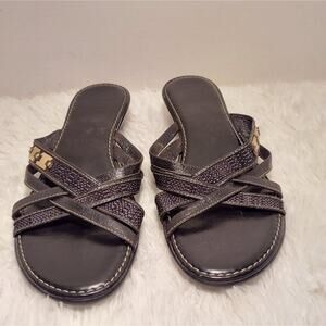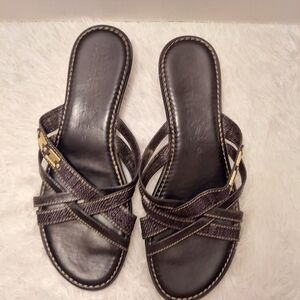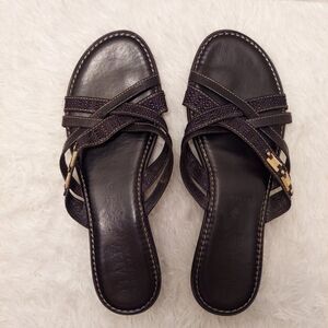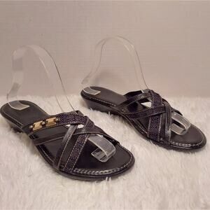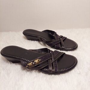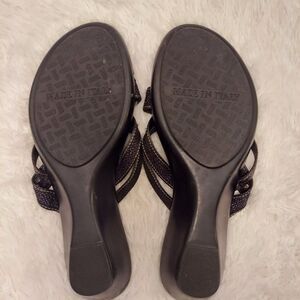 Womens Strappy Sandals Size 9 Made in Italy Black Leather Slip On 1.5" Wedge