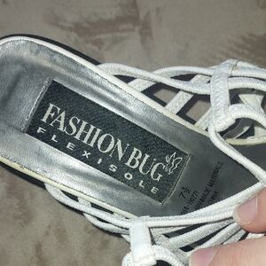 womans size 7.5 fashion bug flexisole small chunky heel sandals with stretchy white straps!