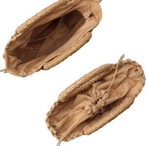 Unique Chic Design: Features a half moon structured shape, circle handles and a drawstring closure, this woven straw handbag is a perfect accessory that adds a touch of styles to your spring and summer look