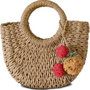 Women's Straw Beach Bag with Pom Pom Tassels Crossbody Shoulder Purse