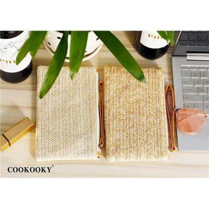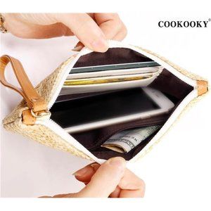 Womens Straw Clutch Bag Bohemian Summer Beach StrawPurse Zipper Wristlet Wallets