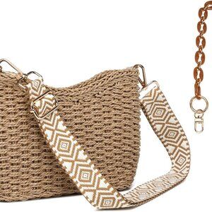 Features: Light and breathable straw exterior with a chic woven design that adds a touch of retro charm. Features a spacious main compartment, a zip closure for security, and an internal slit pocket to keep your essentials organized. Comes with both a fixed and an adjustable shoulder strap so you can wear it just how you like.