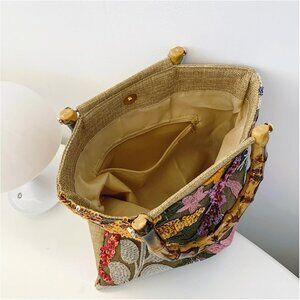 Women’s Straw Tote Bag with Sequin Embroidery Bamboo Handle Fashion Beach