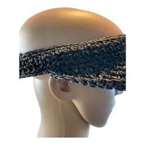 Women Straw Visor One Size Black hat golf party Beach Walk Handmade..