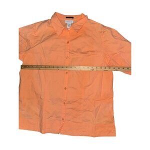 Womens Stretch Button-Up Shirt 3/4 Sleeves Peach Orange Avenue Size 14/16 Cotton