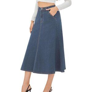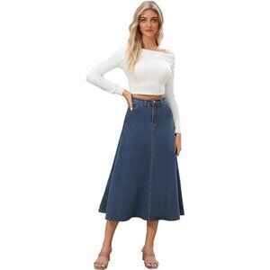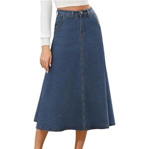 This denim skirt could be worn by a teen on up to an adult. The elastic high-rise design offers a flattering fit and makes it comfortable to wear all day.The length help to keep warm and is perfect for a chic, modest look.It is beautiful for the spring and summer, and would work for early fall as well