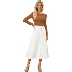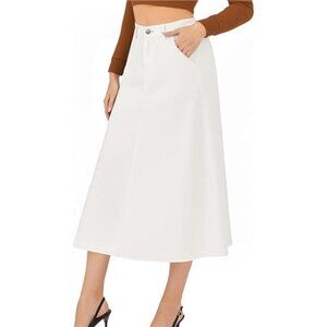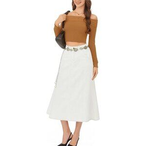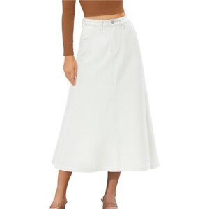 This denim skirt could be worn by a teen on up to an adult. The elastic high-rise design offers a flattering fit and makes it comfortable to wear all day.The length help to keep warm and is perfect for a chic, modest look.It is beautiful for the spring and summer, and would work for early fall as well