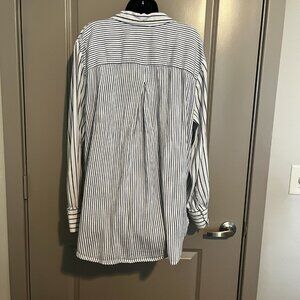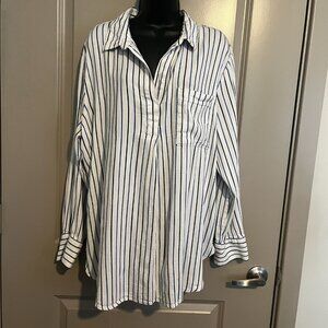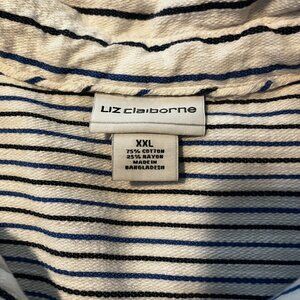 Women's Stripe Blouse XXL. Dark blue & light blue stripes, white top. Excellent pre-owned condition. Liz Claiborne brand, 75% cotton & 25% rayon.