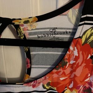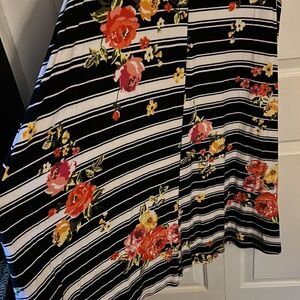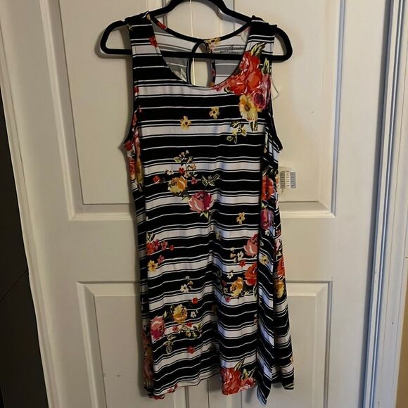 NWT BLACK WHITE STRIPE FLORAL SUPER SOFT SWING MIDI SLEEVELESS DRESS