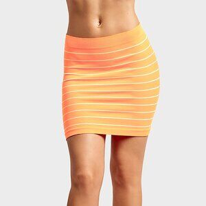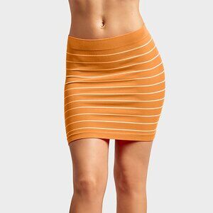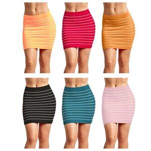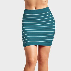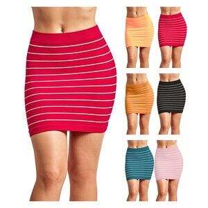 Women's Striped Comfy Seamless Microfiber Slim Nylon Pull-On Closure Mini Skirts